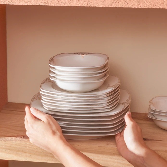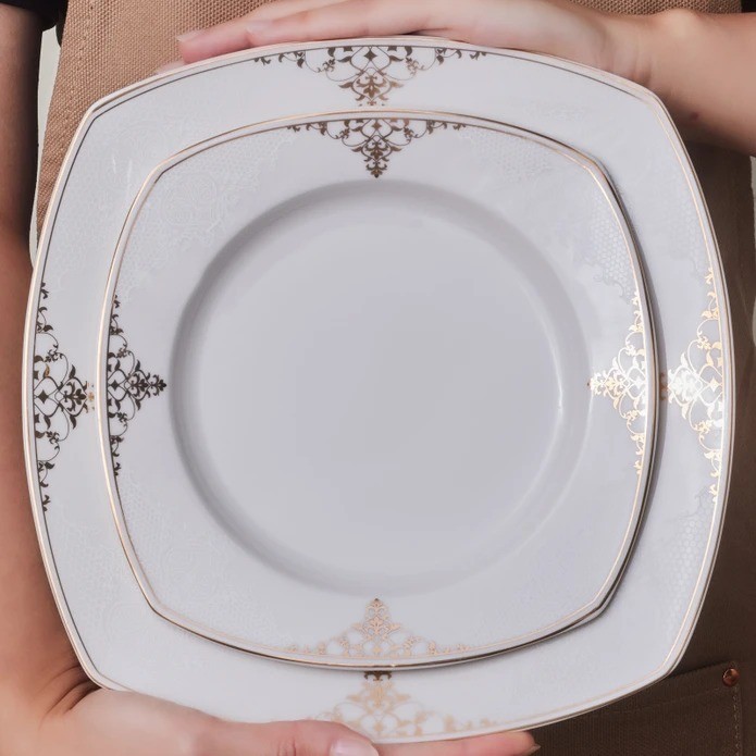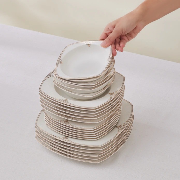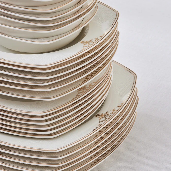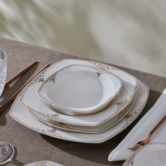 Karaca Square Bone Milania 60 Parça 12 Kişilik Yemek Takımı Gold