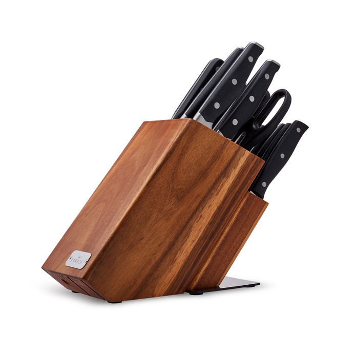 Stand: Ahşap malzeme, bıçaklarınızı güvenle saklamak için tasarlanmıştır.