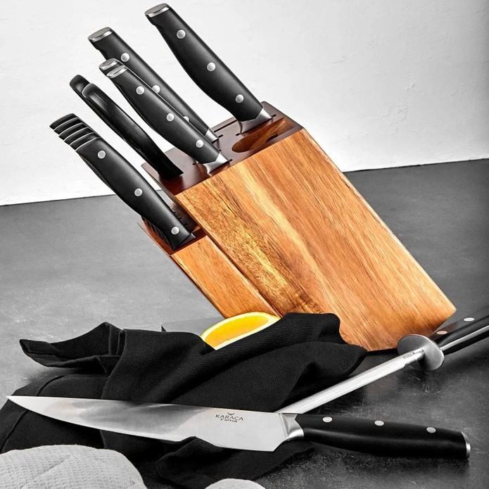 Karaca Surplus Pro 14 Parça Bıçak Seti, mutfaktaki tüm kesme, doğrama ve dilimleme işlemlerini kolaylaştırırken aynı zamanda şık bir görünüm sağlar. Her mutfakta yer alması gereken temel araçlardan biridir.