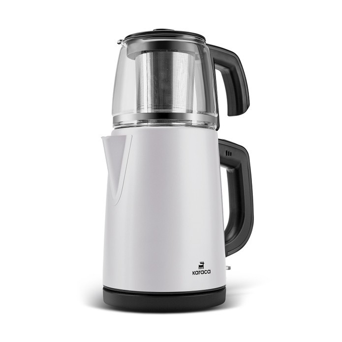 Karaca Tea Glass 2 in 1 Çelik Çay Makinesi ve Kettle White