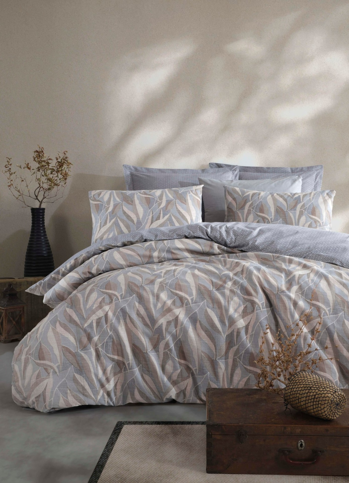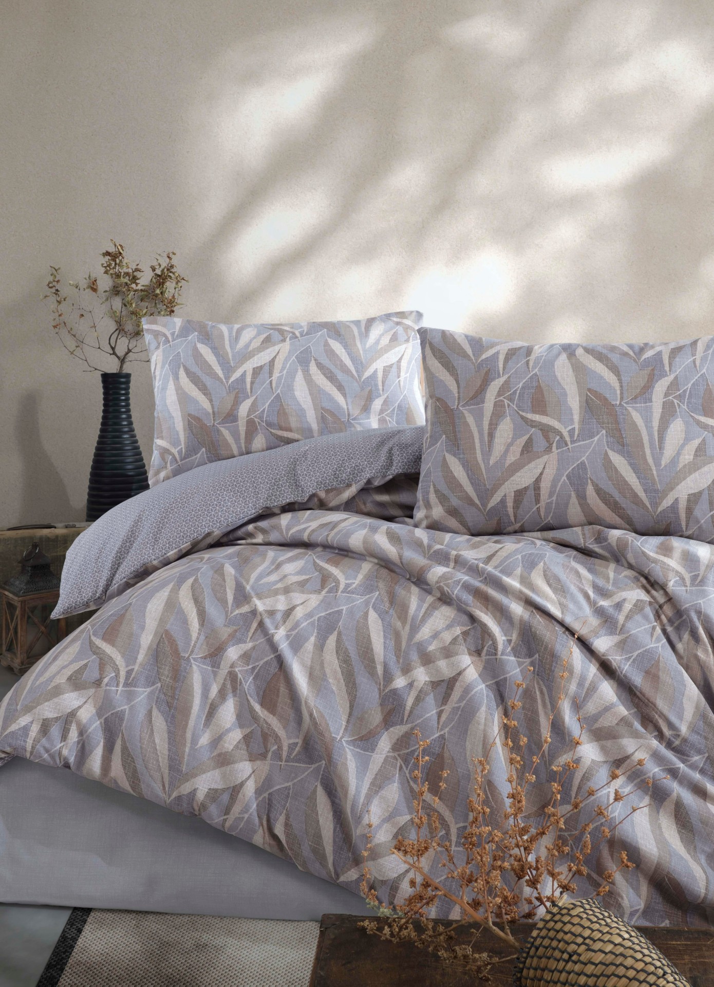 Bu set, sade ve zarif tasarımıyla yatak odanıza sıcak bir atmosfer katar. Pamuklu kumaşı sayesinde konforlu bir uyku deneyimi sunar.