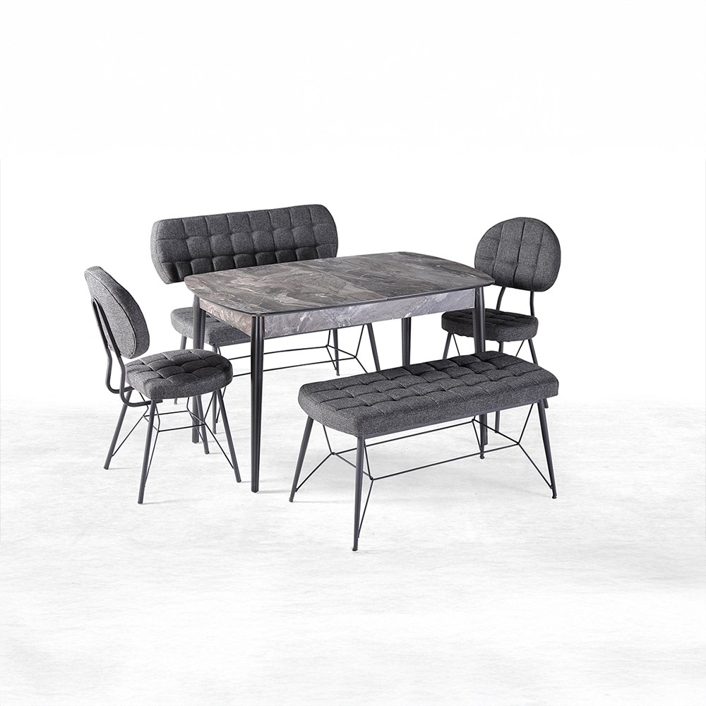 Kelebek İnci Metal Bençli Masa Takımı – Siyah Mermer, modern ve dayanıklı tasarımıyla yaşam alanlarınıza şıklık ve fonksiyonellik kazandırır. Çok yönlü kullanım imkânı sunan bu masa takımı, oturma odasında kahve masası, yemek odasında yemek masası veya mutfakta ada tezgahı olarak rahatlıkla kullanılabilir. Uzayabilme özelliği sayesinde ihtiyacınıza göre genişleyerek esnek ve pratik bir kullanım sunar.