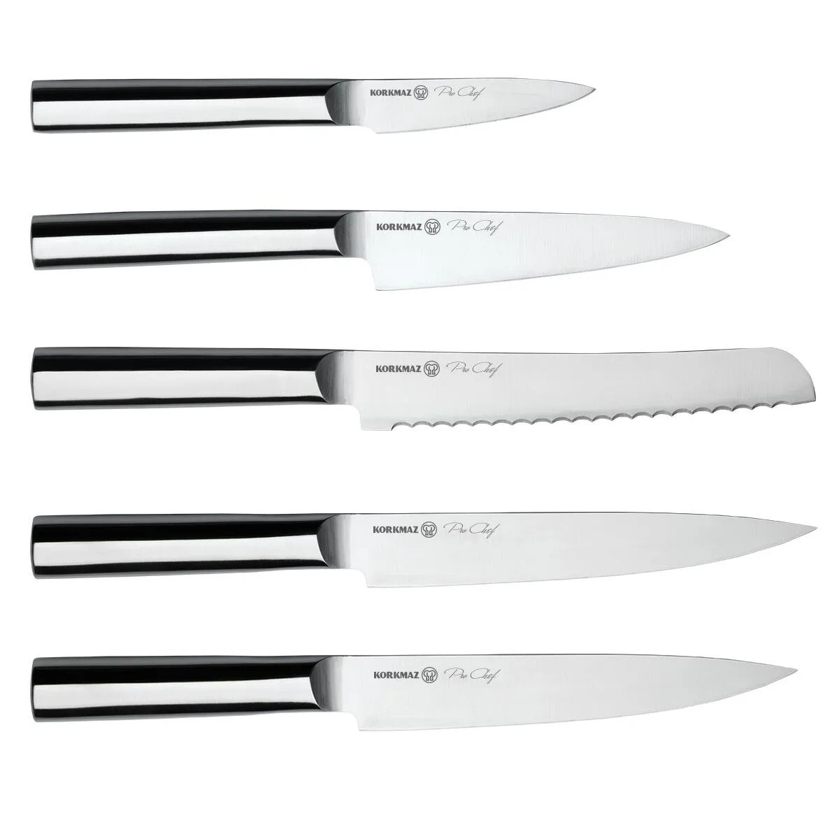 Korkmaz Pro-Chef 6 Parça Bloklu Bıçak Seti, yüksek kaliteli malzemeler ve profesyonel kullanım özellikleriyle mutfaktaki tüm kesme, dilimleme ve doğrama ihtiyaçlarınıza mükemmel bir şekilde cevap verir.