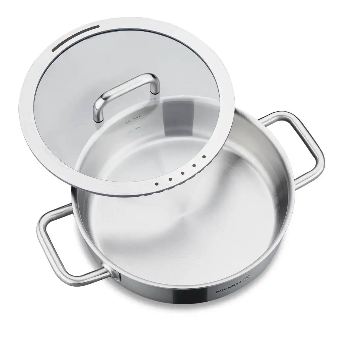 Korkmaz Aura A2794 8 Parça Çelik Tencere Seti, şıklığı ve fonksiyonelliği bir araya getirerek mutfaklarınıza yenilik getiriyor. Sağlıklı pişirme için 18/10 Cr-Ni paslanmaz çelik malzemeden üretilen bu set, indüksiyon taban teknolojisi ile enerjiden tasarruf sağlarken, homojen ısı dağılımı sayesinde yemeklerinizin tam kıvamında pişmesini sağlar.