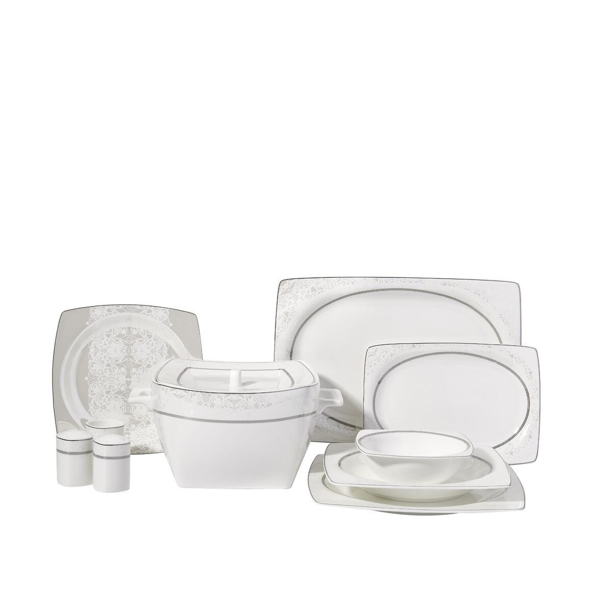 HesabımKorkmaz Bone Selection A8437 Kare Yemek Takımı, zarif ve incelikli tasarımıyla kalabalık sofralara şıklık katmak için tasarlanmıştır. 60 parça ve 12 kişilik zengin içeriği sayesinde hem günlük aile yemeklerinde hem de özel davet sofralarında eksiksiz bir sunum deneyimi sağlar.