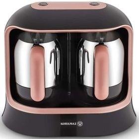 Korkmaz Kahvekolik A861-02 Twin, Türk kahvesi tutkunlarına özel geliştirilmiş bir makine olup, şıklığı ve fonksiyonelliği ile mutfaklarınıza renk katacak. Çift taraflı fonksiyonu sayesinde aynı anda 8 fincan kahve yapabilme kapasitesiyle pratik kullanım sunar.