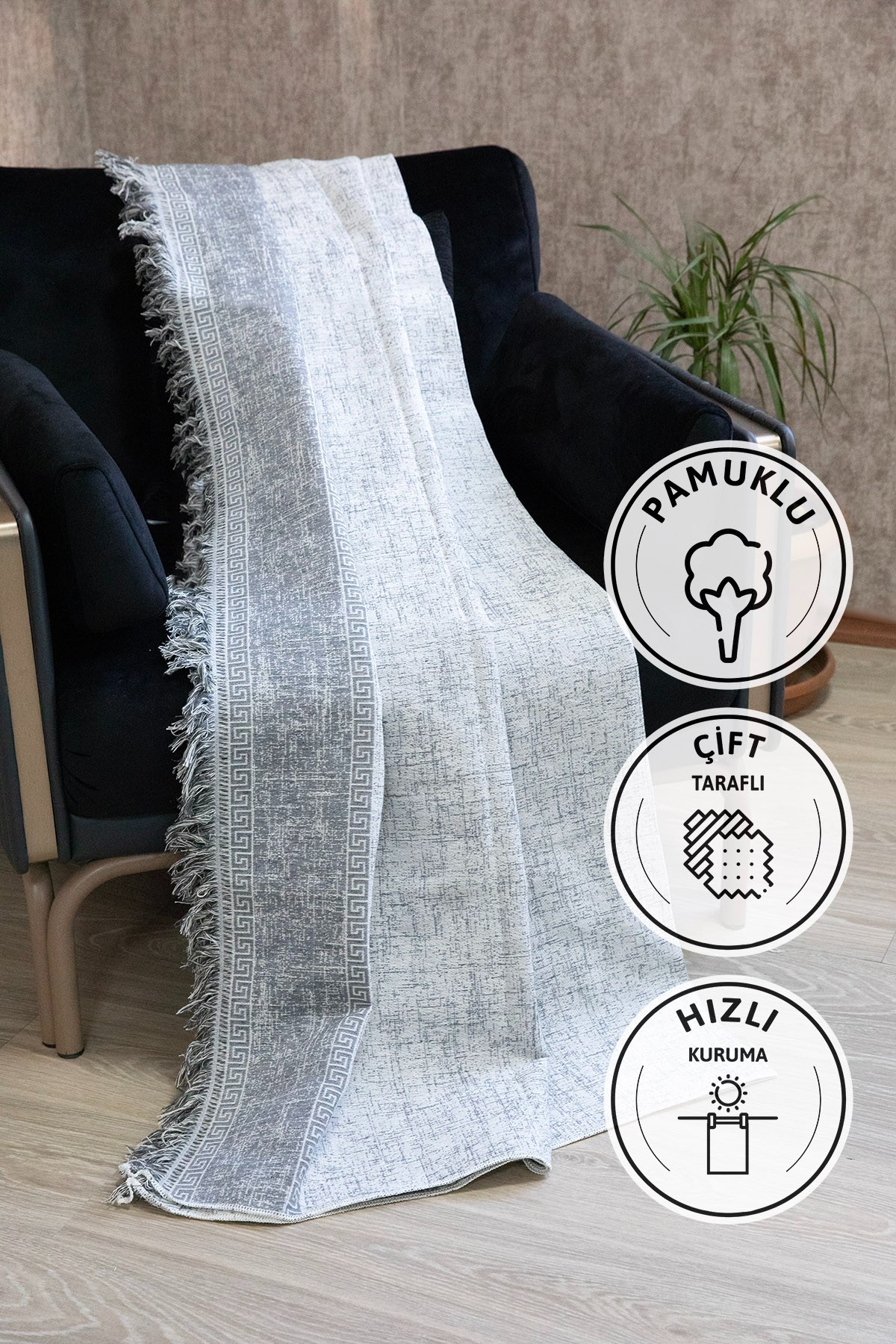 Liva Pamuklu Saçaklı Koltuk Örtüsü, estetik tasarımı, fonksiyonel kullanımı ve rahat dokusuyla evinizin havasını değiştirir.