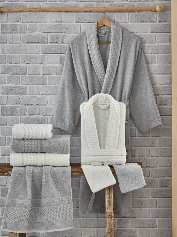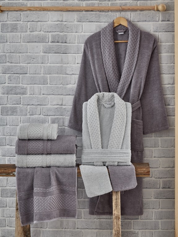 Mysoft Petek Model Aile Bornoz Seti, yumuşak dokusu, kaliteli pamuk yapısı ve zarif tasarımıyla banyo keyfini üst seviyeye taşır. Hem kendiniz hem de sevdikleriniz için uzun ömürlü ve şık bir tercihtir.