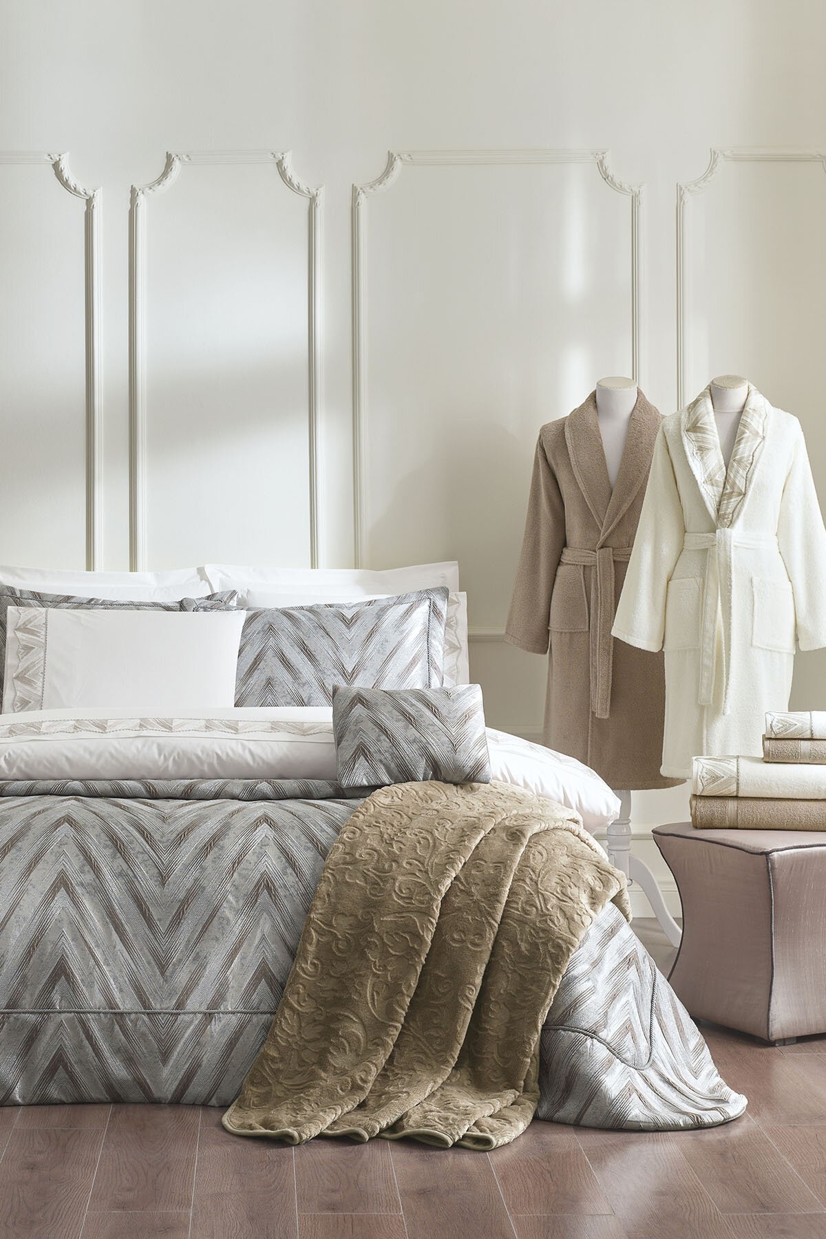 Özdilek Valioso Aile Bornoz Takımı, zarif krem-gri renk uyumu ve %100 pamuk dokusuyla konforlu bir banyo deneyimi sunar. 10 parçalık zengin içeriğiyle hem kadın hem erkek kullanıcılar için ideal olan bu set, su emiciliği yüksek, cilt dostu kumaşıyla fark yaratır. Günlük kullanımda ya da özel günlerde şıklığı ve yumuşaklığı bir arada yaşamak isteyenler için mükemmel bir seçim!