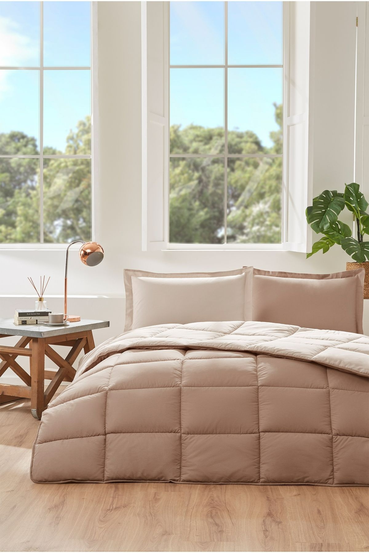 Çelik Kardeşler VIP farkıyla sunulan Özdilek Point Çift Kişilik Gelin Seti Koyu Bej, doğal tonları sevenler için şıklığı ve sadeliği bir araya getiriyor. %100 pamuk yatak örtüsü ve pamuk-keten karışımlı nevresim takımı sayesinde hem estetik hem de kullanım açısından yüksek performans sunar. Geniş içeriğiyle çeyizinizin en özel parçası olmaya aday bu set, yatak odanıza zarif bir dokunuş katacak.