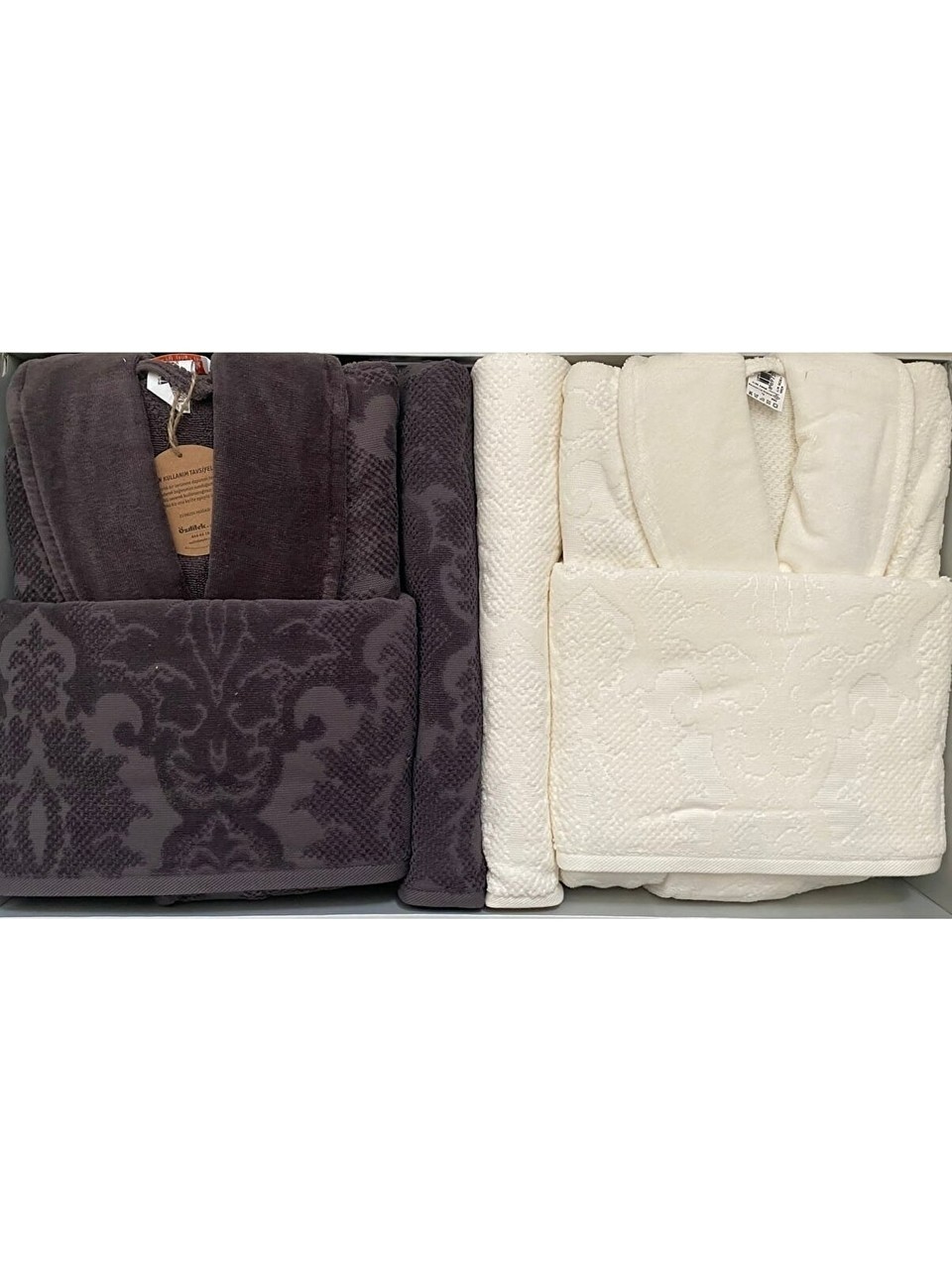 Özdilek Curve Aile Bornoz Seti Krem - Antrasit, banyo sonrası konforu ve şıklığı bir araya getiriyor. %100 pamuk yapısıyla yumuşaklık ve yüksek emicilik sunar. Modern krem ve antrasit renk uyumu ile banyonuza zarafet katarken, kadın ve erkek kullanıcılar için özel ölçülerle tasarlanmış bornozlar ile rahat bir kullanım sağlar.