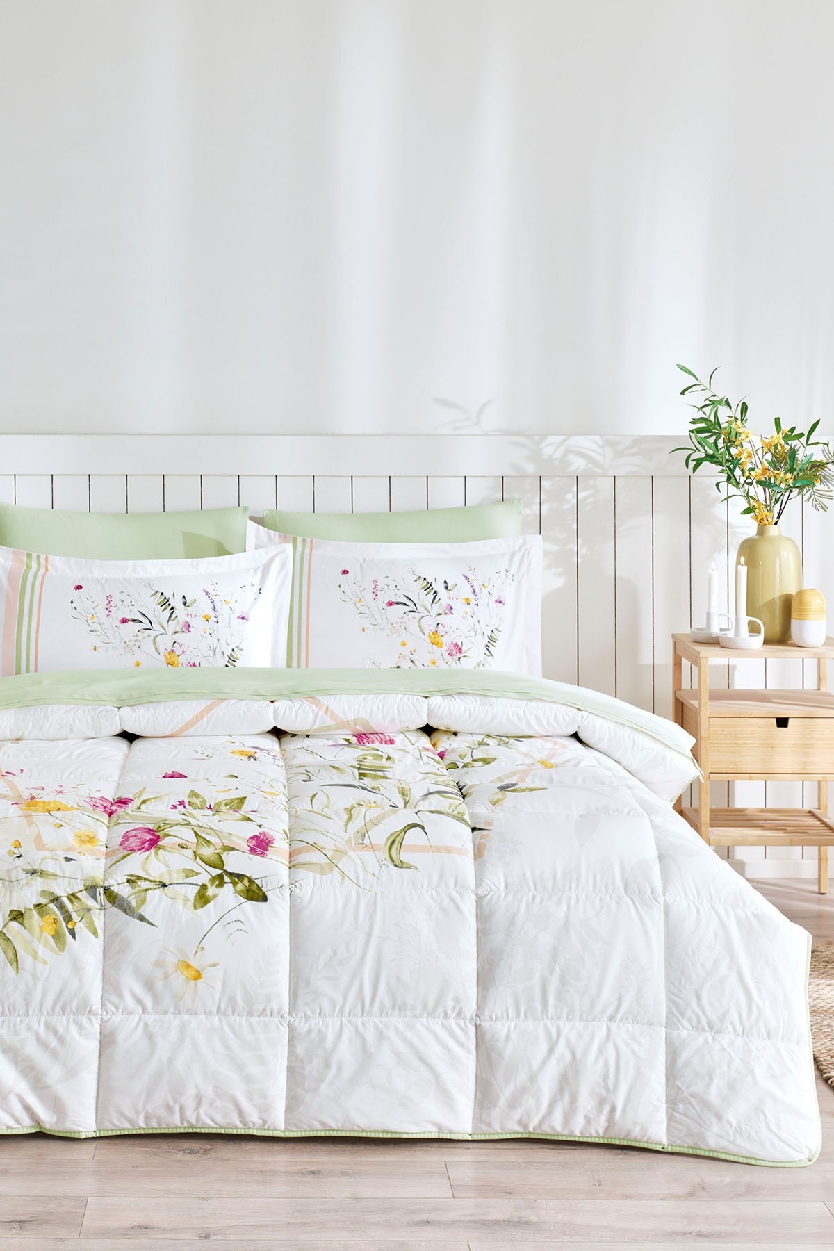 Özdilek Fujer Çift Kişilik Uyku Seti Yeşil, doğal ve huzur verici yeşil tonlarıyla yatak odanıza ferah bir atmosfer kazandırır. Çelik Kardeşler VIP güvencesiyle sunulan bu set, %100 pamuk kumaşın sağladığı yumuşaklık ve konforla size rahat bir uyku deneyimi sunar. Yorgan, yorgan koruması, çarşaf ve dört adet yastık kılıfı içerir, böylece her şey ihtiyacınız olan her şey tek bir sette toplanır.