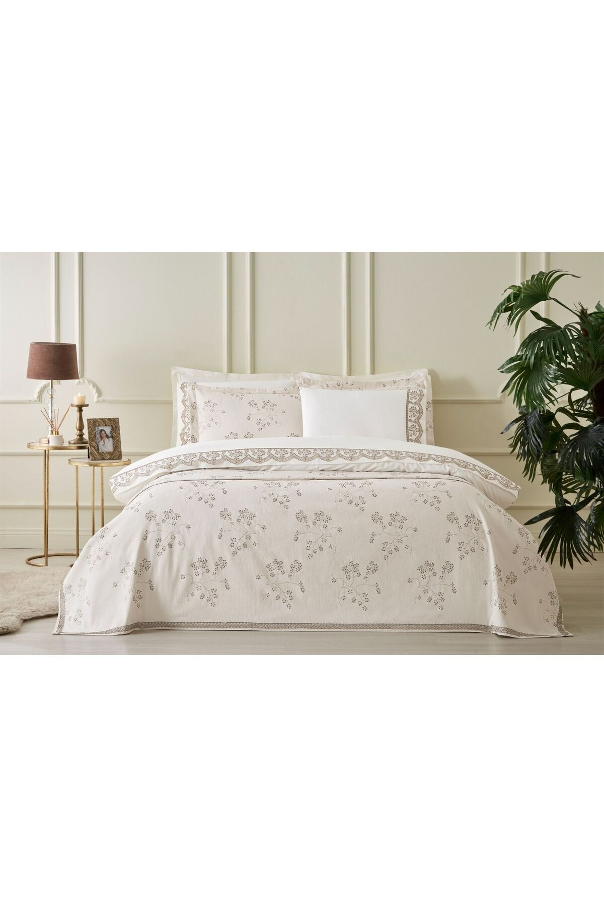 Zarafeti ve işlevselliği bir araya getiren Özdilek Ditsy Bej Gelin Seti, ev dekorasyonunuza sıcaklık ve şıklık katar. Kaliteli dokusu ve romantik detaylarıyla her mevsime uygun bir seçimdir. Çelik Kardeşler VIP farkıyla şıklığı yaşam alanınıza taşıyın.