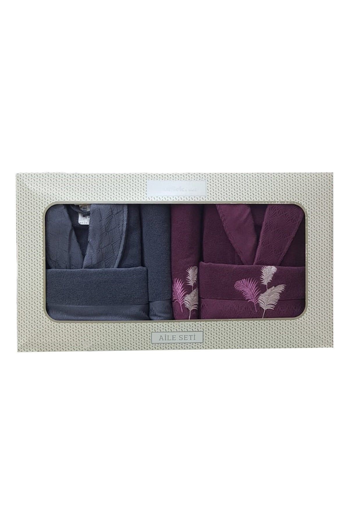 Özdilek Golden Palm Aile Bornoz Seti - Antrasit Mürdüm | Konfor ve Şıklığın Birleşimi