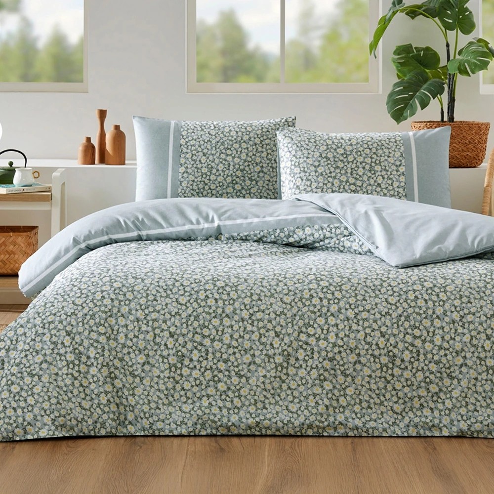 HesabımÖzdilek Nev Çift Kişilik Mint Daisy Field nevresim takımı, %100 pamuk kumaşıyla yumuşak dokunuş, ferah tasarım ve konforlu uyku deneyimi sunar.