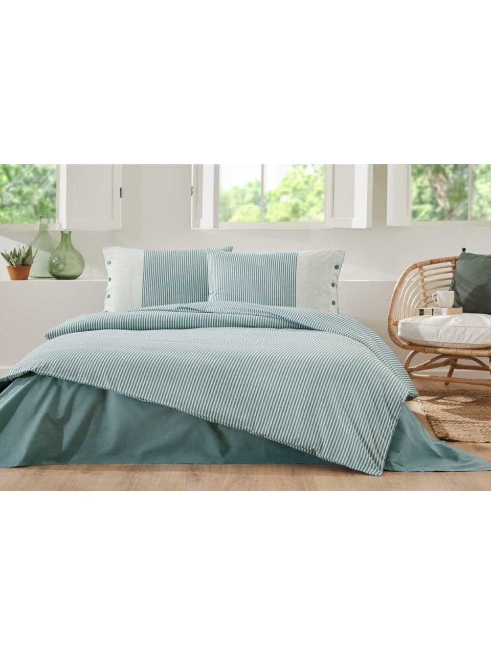Çelik Kardeşler VIP ayrıcalığıyla sunulan Özdilek Nevresim Takımı Ranforce 57 Tel Tek Kişilik Mavi Natural Line, doğadan ilham alan huzurlu renk tonu ve yüksek kaliteli pamuklu dokusuyla öne çıkar. Ranforce kumaş yapısı sayesinde hem dayanıklıdır hem de nefes alabilir özellikte olup, cildinize dost yumuşaklığı ile konforlu bir uyku sunar. Minimal tasarımı ve %100 pamuk yapısıyla yatak odanıza şıklık katarken, yumuşak dokusuyla rahatlığı da beraberinde getirir.