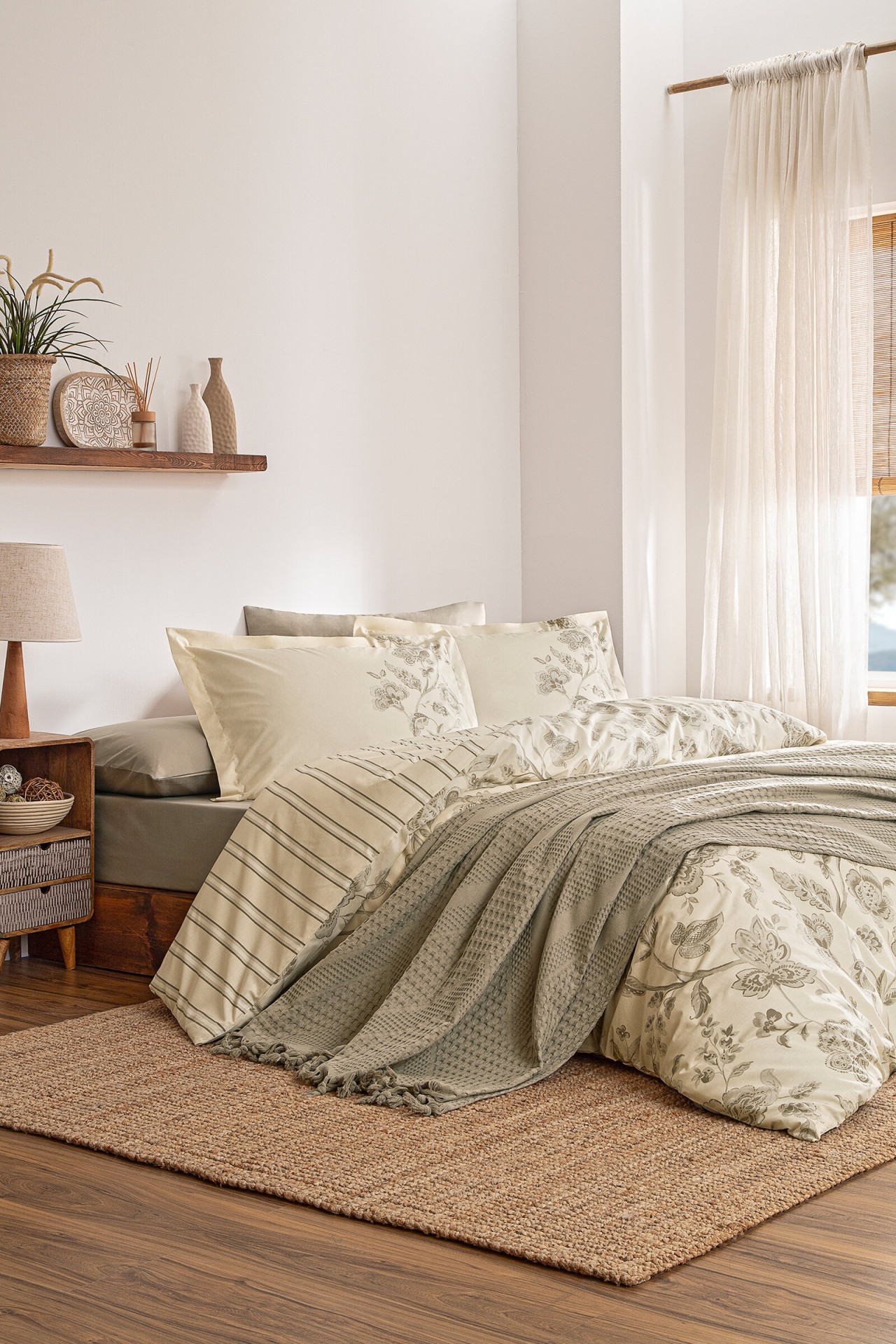 Özdilek Fresque Çift Kişilik Pikeli Nevresim Takımı, zarif desenleri ve yumuşak pamuklu dokusuyla yatak odanıza taze bir hava katar. Pike ve nevresimi bir arada sunan bu set, hem dekoratif görünüm hem de işlevsellik sunar. %100 pamuk yapısı ile cilt dostu, nefes alabilen ve konforlu bir uyku deneyimi sağlar. Şıklığı ve kalitesiyle dikkat çeken bu ürün, Çelik Kardeşler VIP ayrıcalığıyla elden taksitli uygun fiyat avantajıyla sizlerle buluşuyor.
