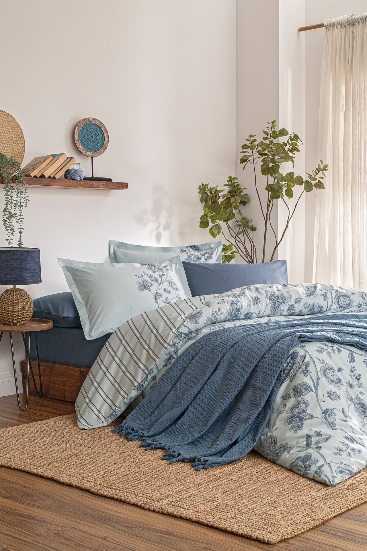 Özdilek Pamuk Battaniyeli Nevresim Takımı - İndigo/Mavi, ferahlatıcı mavi tonları ve %100 pamuk içeriğiyle yatak odanızda hem şıklık hem de doğal konfor sunar. Nefes alabilen pamuk kumaşı ile sağlıklı bir uyku ortamı oluştururken, zarif desenleriyle dekorasyonunuza modern bir dokunuş katar. Çelik Kardeşler VIP kalitesiyle, şıklığı ve işlevselliği bir araya getiriyor.