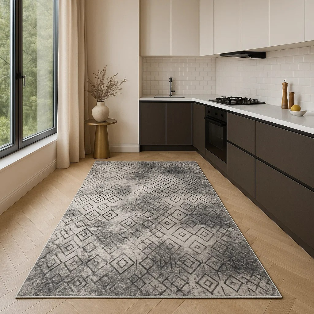 Padişah Halı Tuna Gri Yolluk, antre, mutfak, koridor gibi alanlarda hem şıklık hem konfor arayan kullanıcılar için ideal tercihtir. Kaymaz tabanı, yumuşak dokusu ve şık tasarımı ile hem dekoratif hem de işlevsel bir halıdır.
