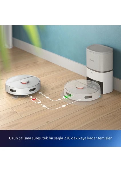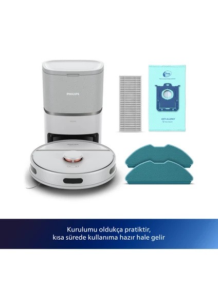 Philips HomeRun 3000 Serisi Aqua, işlevsel ve şık tasarımı ile temizlik işlerinizi kolaylaştıran bir akıllı robot süpürge sunuyor. Islak ve kuru temizlik yapabilme yeteneği, yüksek emiş gücü ve uzun çalışma süresi ile her türlü zemini etkili bir şekilde temizler. Otomatik boşaltma istasyonu ve sezgisel uygulama sayesinde temizlik tamamen zahmetsiz hale gelir. Ayrıca halı algılama, engelleri aşabilme ve gerçek zamanlı harita ile robot, evinizin her köşesini kusursuz bir şekilde temizler. Hem hijyen hem de kullanım kolaylığı sunan bu robot süpürge, evinizi her gün temiz ve sağlıklı tutar.