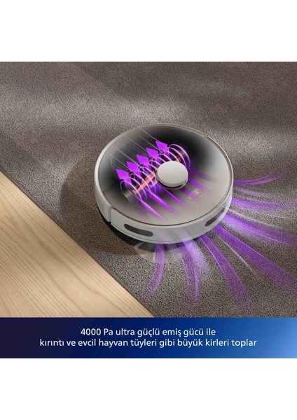 Philips HomeRun 3000 Serisi Aqua XU3110/02 Çöp İstasyonlu Beyaz Akıllı Robot Süpürge ile temizlik, artık her gün zahmetsiz ve verimli bir şekilde yapılabilir. Bu akıllı robot süpürge, ıslak ve kuru temizlik özellikleri ile evinizi her gün hijyenik tutmak için mükemmel bir çözüm sunar. İşte ürünün öne çıkan özellikleri ve detaylı teknik özellikleri: