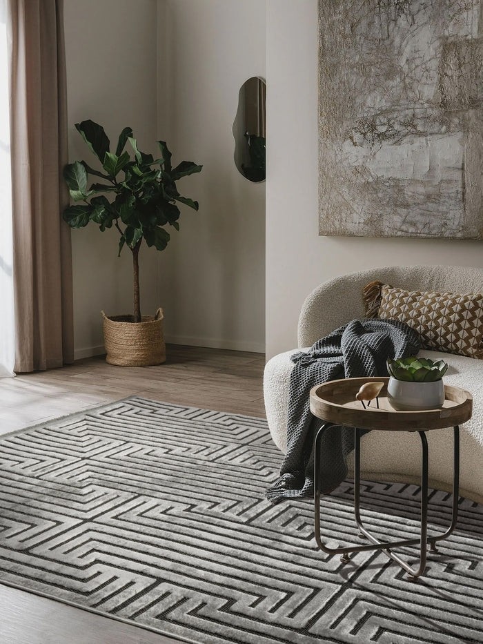 Pier PR02 Grey modern halı, minimal ve klasik çizgileri aynı potada buluştururken sağlıklı ve uzun ömürlü yapısıyla kullanıcı dostudur. Farklı ölçü seçenekleriyle her mekâna uyum sağlayan bu model, zamansız bir şıklık arayanların tercihi olacaktır.