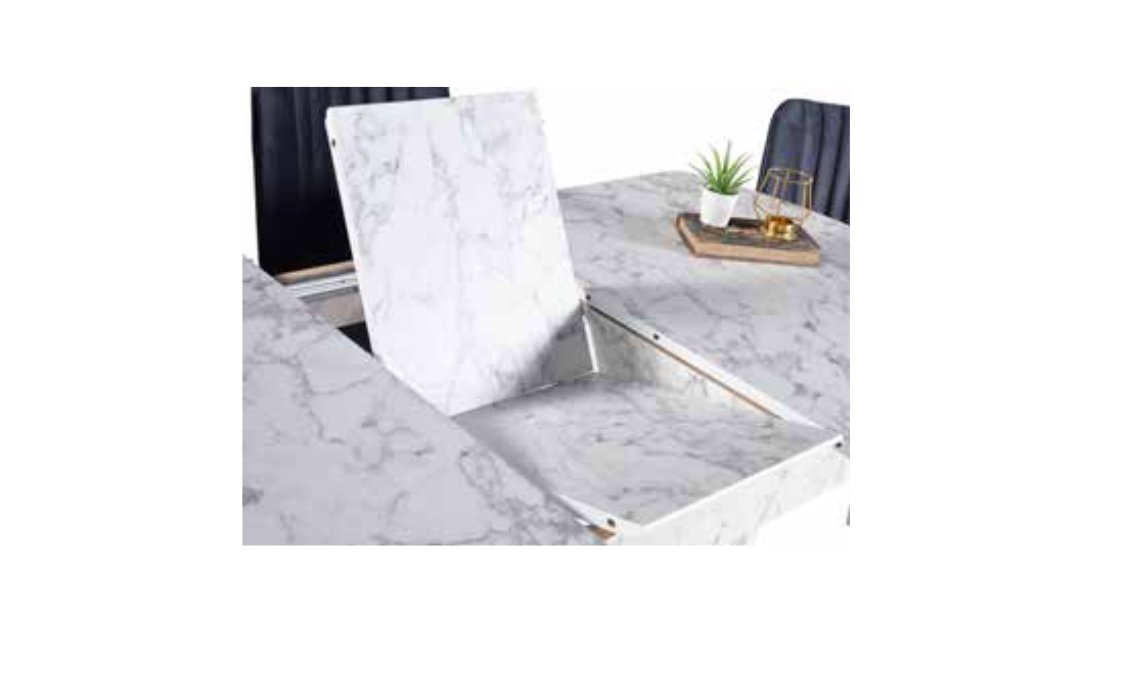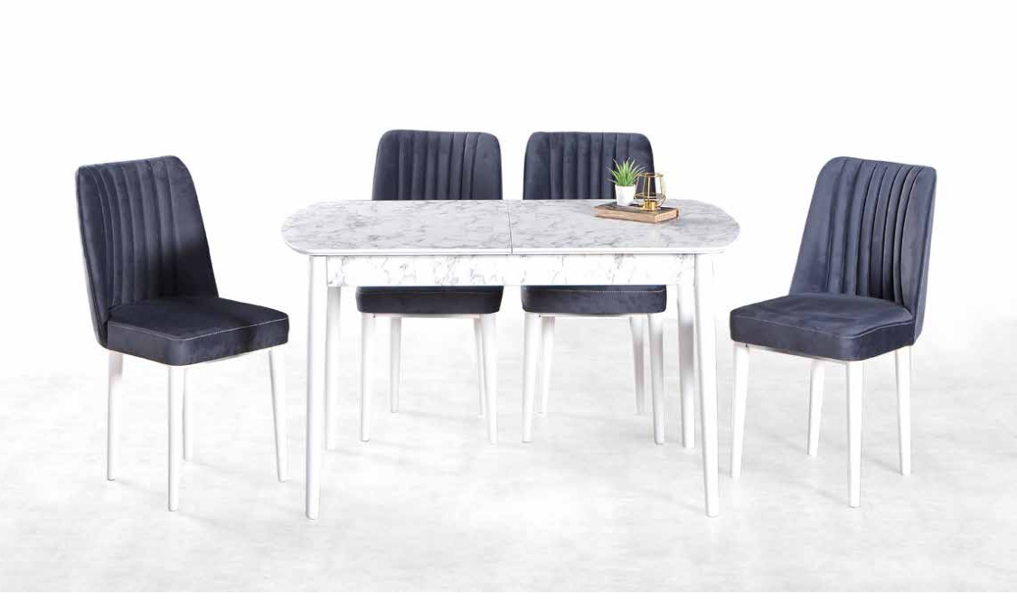 Retro Lam beyaz mermer Masa Takımı, şıklığı ve işlevselliği bir arada sunarak, salonunuza modern bir hava katar. Çelik Kardeşler VIP’nin sunduğu elden taksit fırsatları ile bu özel masa takımına kolayca sahip olabilir, evinizde kalite ve estetiği buluşturabilirsiniz.
