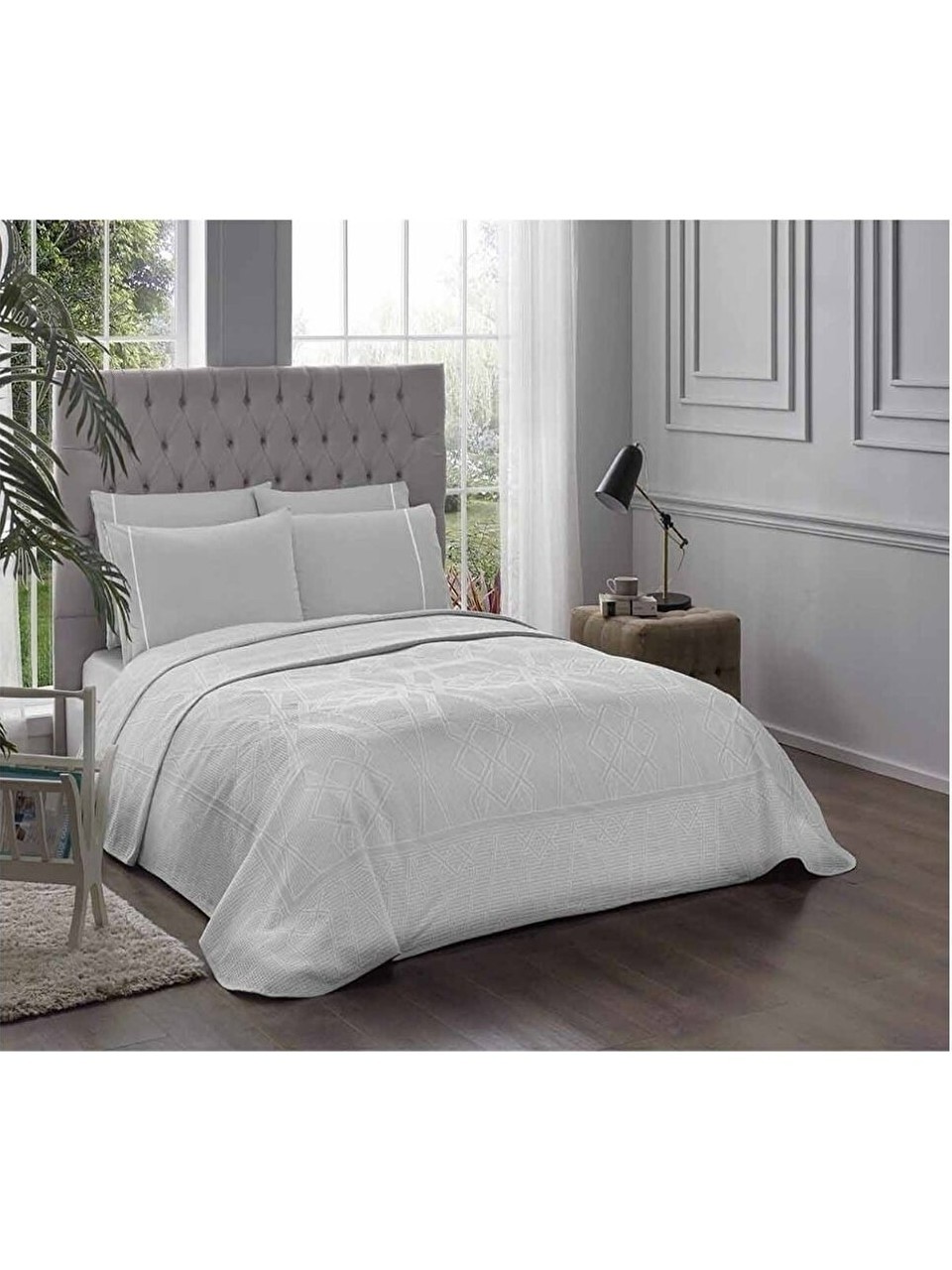 Taç Parker Gri Jakar Pike Takımı Çift Kişilik, modern jakar dokusu ve sade gri rengiyle yatak odanıza sofistike bir hava katıyor. Happy Days serisinin bir parçası olan bu özel takım, pamuk ve polyester karışımı kumaşıyla hem dayanıklılığı hem de yumuşak dokusuyla konforu bir arada sunar. Çelik Kardeşler VIP kalitesiyle şıklığı ve işlevselliği bir araya getirin.