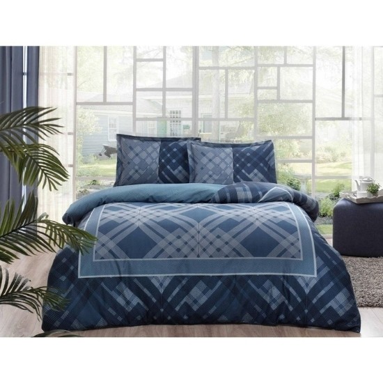 Şık ve zarif saks mavisi rengiyle modern bir görünüm sunan bu nevresim takımı, pamuk saten kumaşıyla yumuşak ve lüks bir uyku deneyimi sağlar.