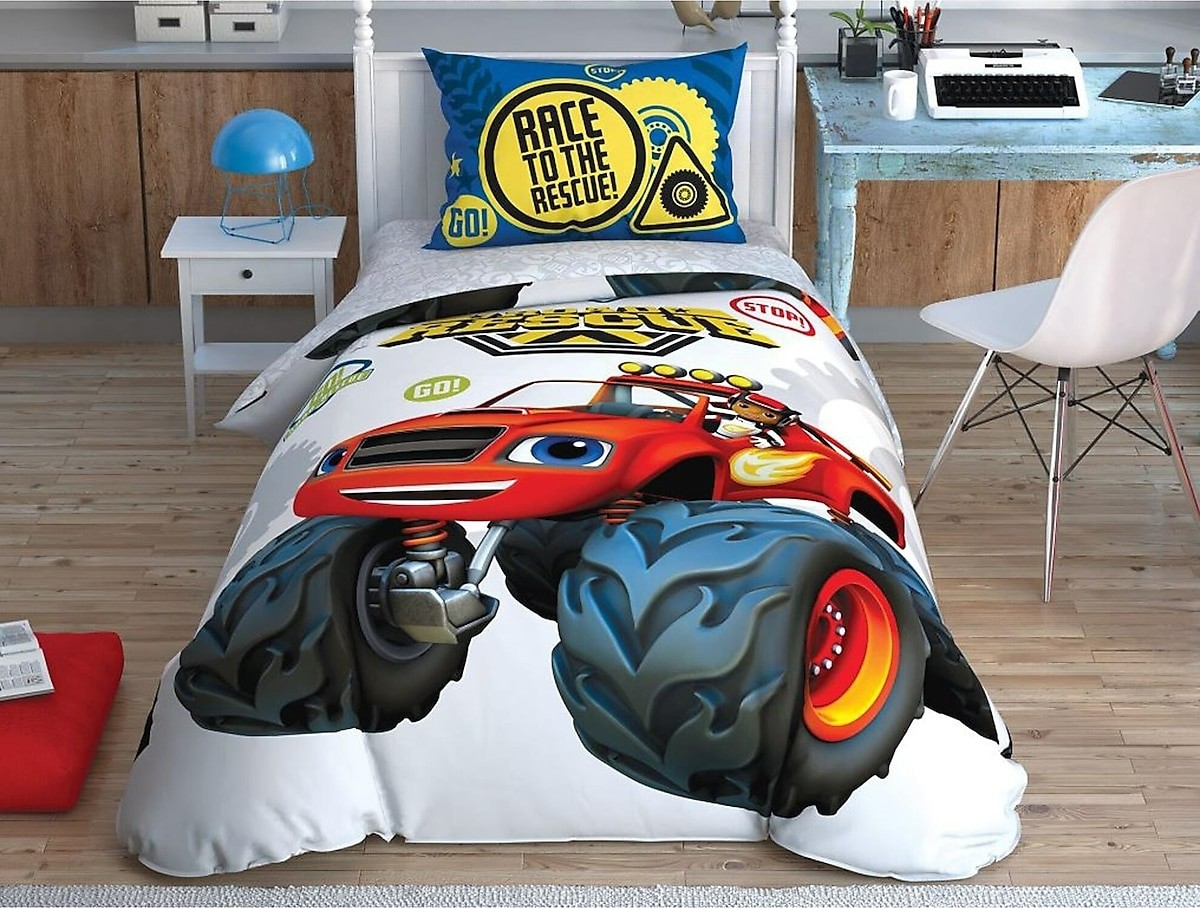 Taç Blaze Road Rescue Nevresim Takımı, rengarenk tasarımı ve pamuk kalitesiyle çocuğunuzun odasını eğlenceli hale getirirken, sağlıklı ve konforlu bir uyku deneyimi sunar. Çelik Kardeşler VIP avantajlarıyla şimdi sahip olun.