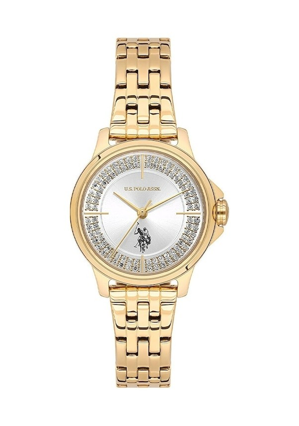U.S. POLO ASSN. USPA2082-03 Kadın Kol Saati, zarif sekizgen kasası ve altın rengi detaylarıyla klasik şıklığı modern dokunuşlarla buluşturur. 72 gram ağırlığıyla bilekte dengeli bir duruş sunan bu model, gümüş tonlu taşlı kadranı ve altın renkli çelik kayışıyla stilinize sofistike bir hava katmak için tasarlandı. Çelik Kardeşler VIP farkıyla zamana ışıltılı bir yorum katın.