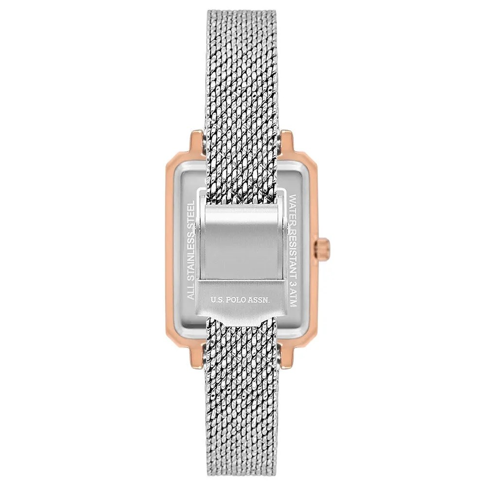 U.S. POLO ASSN. USPA2087 Kadın Kol Saati, yuvarlatılmış kare çelik kasası ve zarif hasır metalik gri kordonu ile klasik stilin modern yorumunu sunar. 30x36 mm kasa ölçüsüyle bileğinizde zarif bir duruş sergilerken, 66 gram ağırlığı sayesinde hafif ve konforlu bir kullanım sağlar. Quartz mekanizması ile hassas zaman takibi sunan bu saat, Çelik Kardeşler VIP kalitesiyle şıklığı ve dayanıklılığı bir arada arayan kadınlara özel tasarlandı.