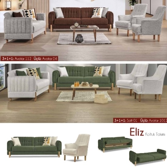 Eliz Koltuk Takımı, konforun zarafetle buluştuğu yaşam alanları için fonksiyonel ve estetik bir tercih sunar.